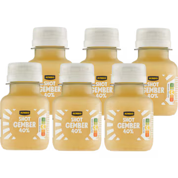 Veel gembershotjes uit de supermarkt bestaan grotendeels uit water of appelsap, om het goedkoper te maken.