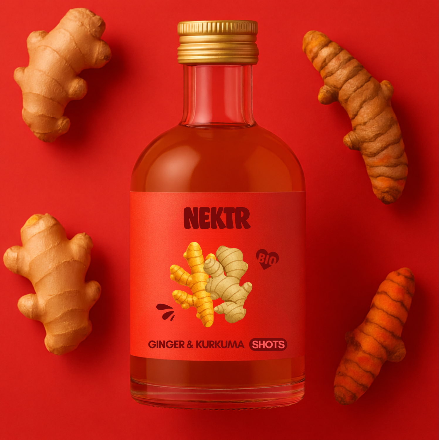 NEKTR is een geconcentreerd gembersap. Een shot bevat ongeveer 10–20 ml.